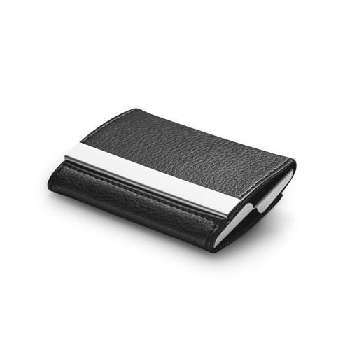 Metal and PU double business card holder. Supplied in a gift box. 93 x 67 x 19 mm | Box: 98 x 72 x 22 mm