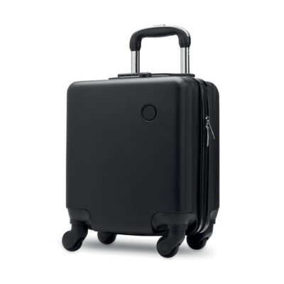 14 inch underseat luggage trolley with 4 wheels in ABS. It has an inside zippered pocket. Including a combination lock and double tube frame.