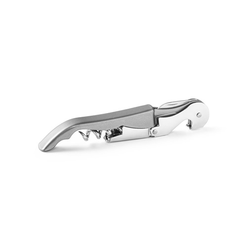 Metal and PP corkscrew with bottle opener, sommelier knife and stainless steel spiral. 121 x 20 x 12 mm