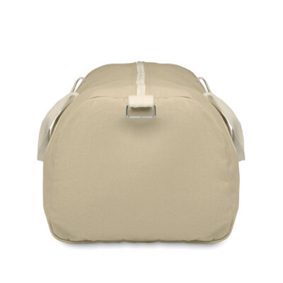 Duffle bag in recycled fabrics (60% recycled cotton, 40% recycled polyester) in 320 gr/m² with handle natural cotton webbing and an adjustable and detachable shoulder strap.