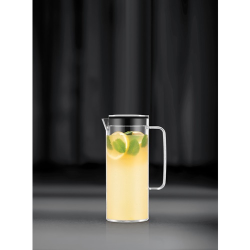 Large capacity, transparent cylindrical pitcher with protective lid. The expertly designed jug spout and convenient handle make serving drinks easy, while the lid protects against splashes and spills. Ideal for serving refreshing drinks but can also be used for serving hot drinks. Very versatile and with a considerable size, the Melior is the perfect pitcher for social events. It has a capacity of up to 12 L. Supplied in gift box. 100 x 237 x 147 mm