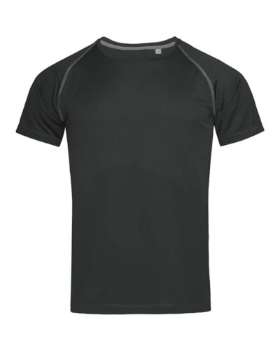Modern and stretchy sports T-shirt for men, with contrast raglan seams made of quick-drying, breathable mesh-material. Contrast neck tape, decorative flatlock seams and excellent freedom of movement.
