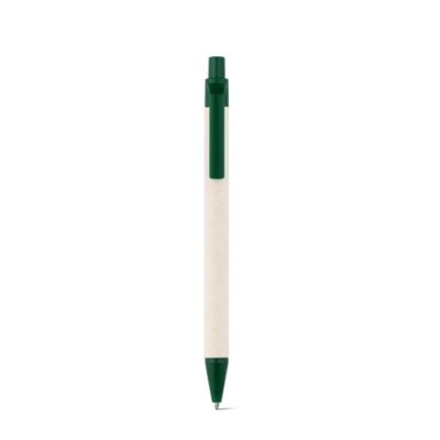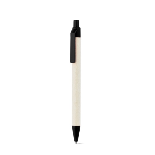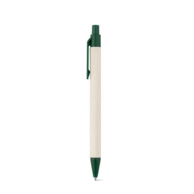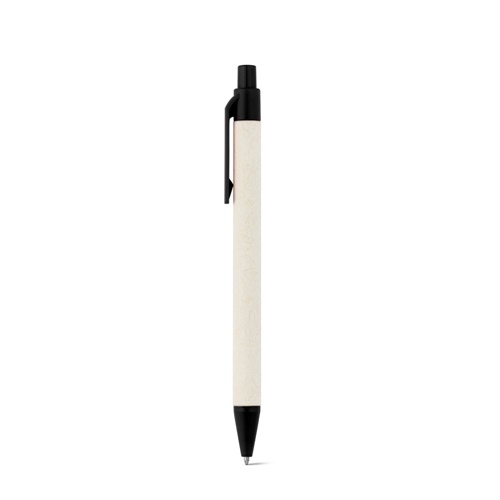 Ballpoint pen made from recycled milk cartons, contributing to the reuse of cardboard and aluminium. Cardboard body and coloured components in recycled ABS (100% rABS). Blue ink. ø10 x 139 mm