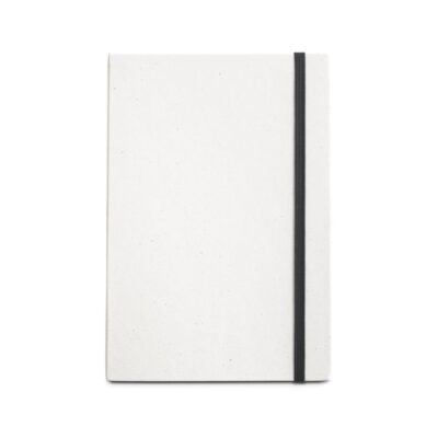 A5 notebook with a rigid cover made from recycled milk cartons, helping to reuse the cardboard and aluminium contained in the cartons. Contains 160 pages, 100% recycled paper, ivory-coloured lined, ribbon and elastic band. 145 x 210 mm