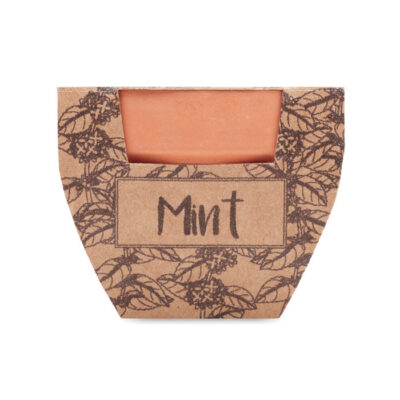 Small clay terracotta pot including mint seeds. Made in EU. Not available for sale in the UK. Soil tablet included.