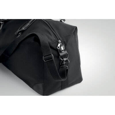 Weekend bag in 340 gr/m² canvas with PU details. The lining is in RPET 210D. The PU details give this bag a more premium look. It is a perfect bag for a short vacation or a weekend city trip. Carry the bag by the short handles or use the included adjustable and detachable straps to carry the bag over your shoulder. Perfect hand luggage size.