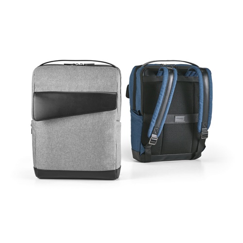 MOTION BACKPACK is a backpack with an irreverent and unique design in 600D and high quality imitation leather. The backpack has several compartments, pockets inside and two padded pockets designed specifically to protect a laptop up to 156 and a tablet up to 105. The straps and padded back accentuate the comfort of this backpack. The trolley strap is another feature that emphasizes the practical side of this backpack, facilitating its transport. The front pocket with flap and the side pockets are also unique in their design, from the asymmetry of the front pocket to the discreet pocket on the side that allows you to store a bottle of water. The backpack is supplied in a non-woven bag. Capacity up to 18 L. Supplied in a non-woven bag. Product includes Quality Test Report. Motion Backpack: 410 x 330 x 150 mm | Bag: 500 x 500 x 80 mm