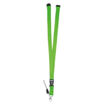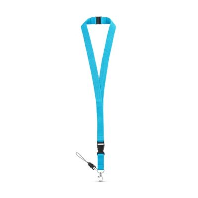 Polyester lanyard with metal carabiner, removable buckle, mobile phone strap and safety lock. 20 x 510 mm