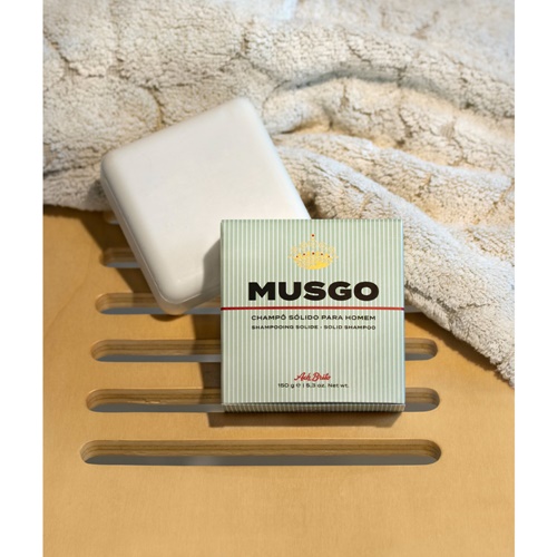 Created in 1936 for the wealthier classes, the Musgo collection is identified by the crown on its packaging, which symbolizes Portuguese aristocracy and masculine fragrance. Solid shampoo for men composed of natural ingredients and essential oils such as glycerin, butter and shea oil – conditioning properties that guarantee soft, shiny and lightly scented hair. Traditionally produced in Portugal. Capacity 150 g. Classic packaging design. 67 x 70 x 31 mm