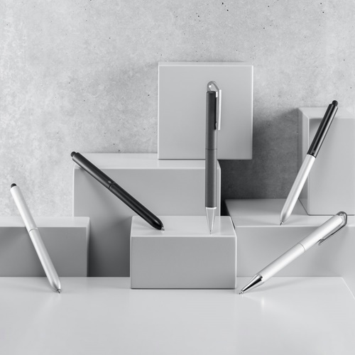 Neo is an avant-garde, ergonomic aluminium ball pen with twist mechanism that is designed for professionals who use a notepad and a tablet as their office. The silicone touch tip enhances its usefulness and the matt/glossy lacquered body adds elegance. The ball pen has a metal refill with Dokumental® black ink. This product comes in a cushioned gift box. ø10 x 138 mm | Case: 55 x 30 x 190 mm