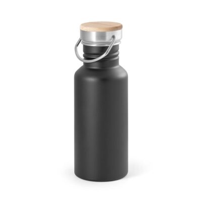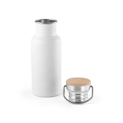 Single wall stainless steel bottle with a capacity of up to 540 mL. Includes screw-on and leak proof lid with bamboo and stainless steel handle. Supplied in a box. ø68 x 192 mm