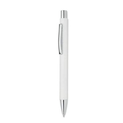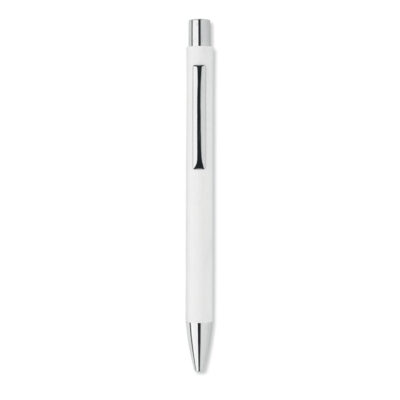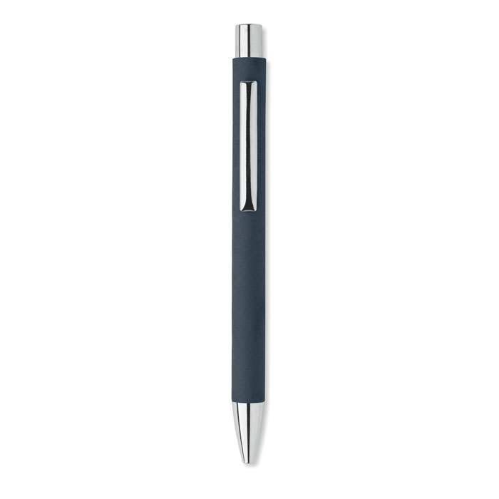 Push button ball pen in recycled paper and metal clip and plastic fittings. Blue ink.