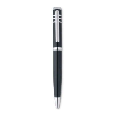 Metal twist ball pen with shiny lacquer finish in carton gift box. Black ink.
