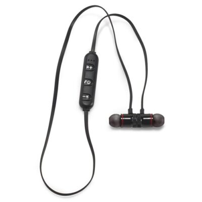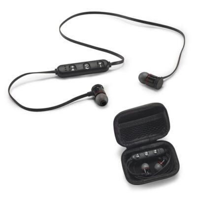 PC magnetic earphones. BT 41 transmission with up to 3 hours of autonomy. The earphones are capable of answering calls, control volume and connect to the playlist of a mobile device. Includes USB cable for charging. Supplied in an EVA pouch. 80 x 65 x 32 mm