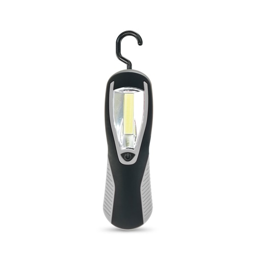 ABS flashlight with LED COB, hanging hook and magnet. Includes 3 AA batteries. 61 x 200 x 35 mm
