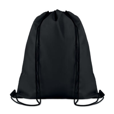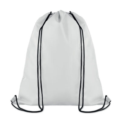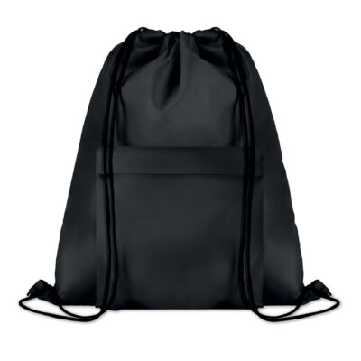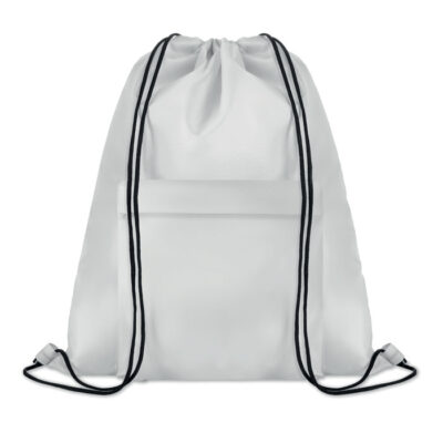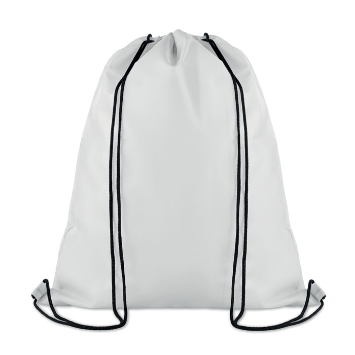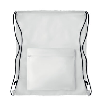 Large drawstring bag in 210D polyester with zippered front pocket. Sublimation print available on white item only.