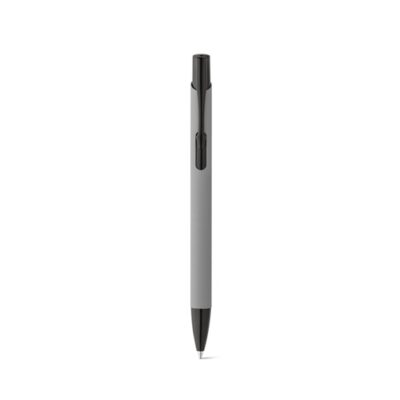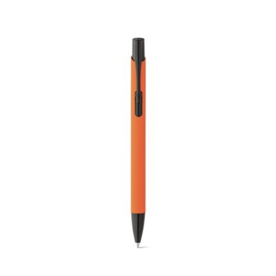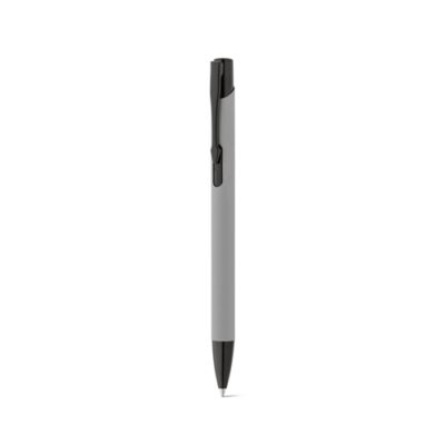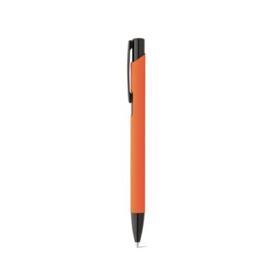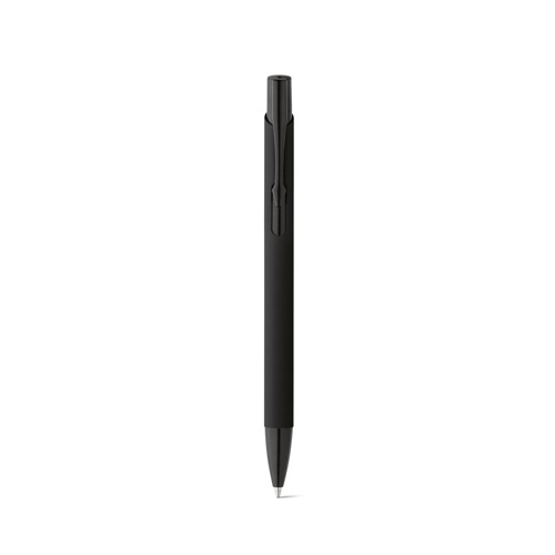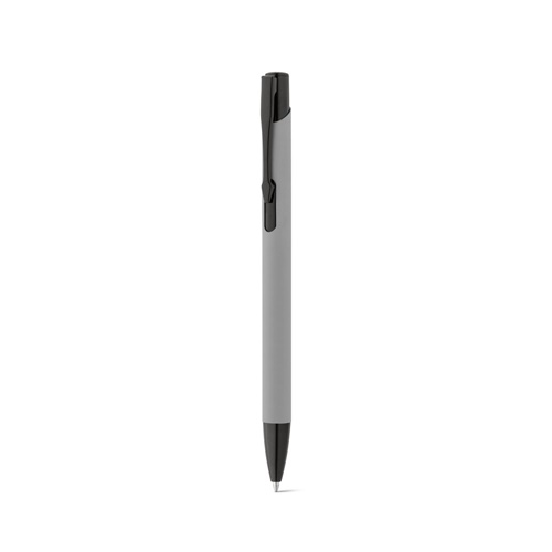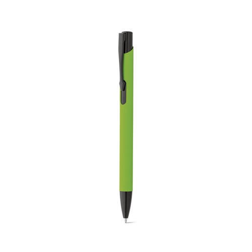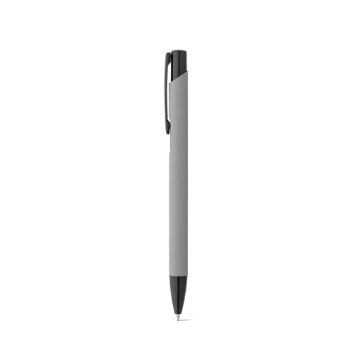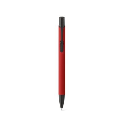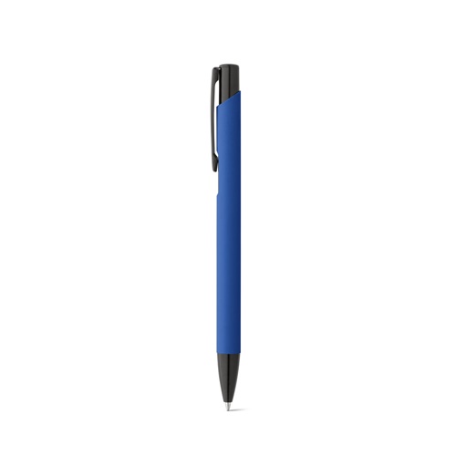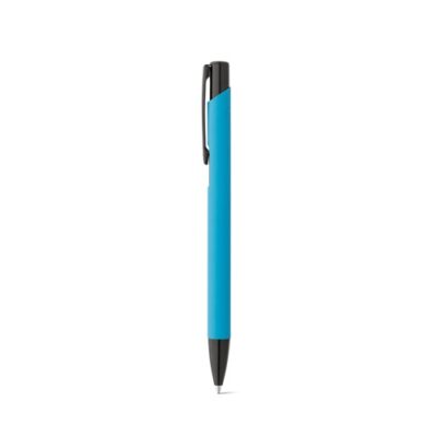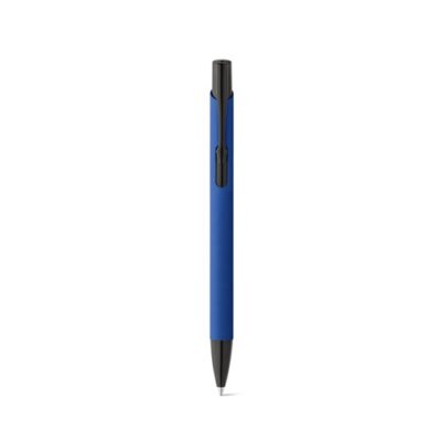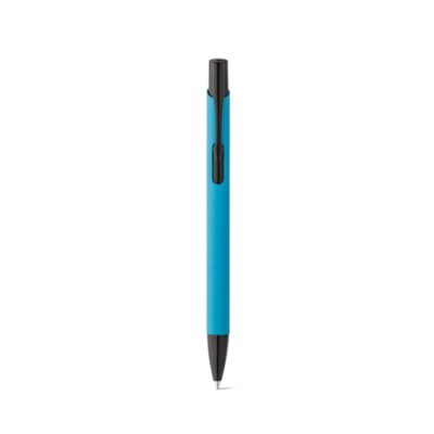 Aluminium ball pen with coloured body and rubber finish. Blue ink. ø10 x 137 mm