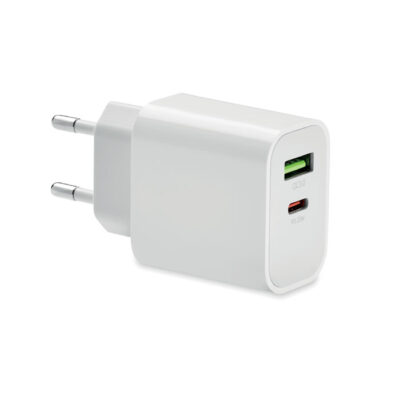 EU 2-pole charger. Supports quick charging technology (18W). 2 ports Type A and 1 Type C. Supports Quick Charge 3.0/Power Delivery technology. Not suitable for UK use.