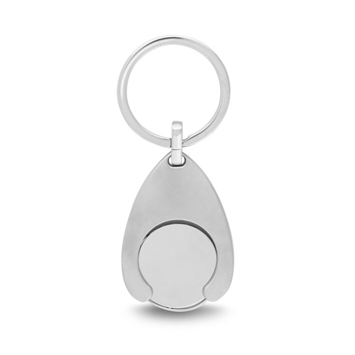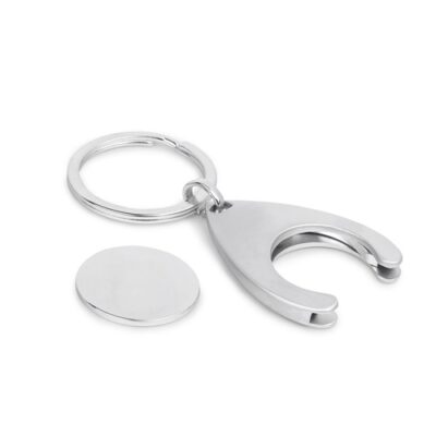 Metal keyring with coin for supermarket cart. Supplied in a gift box. 32 x 40 mm | Coin: ø24 mm