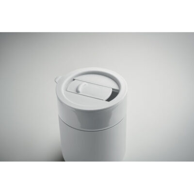 “Ceramic tumbler with silicone sleeve and PP lid. Capacity: 330 ml.”