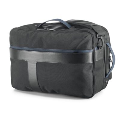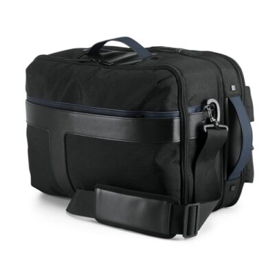 “2-in-1 urban rucksack, made of 1680D for extra robustness, with poly-skin details. Its design makes it a unique and versatile product that can be used as a rucksack or a travelling bag. The backpack has a front pocket with a hidden zip, a rear anti-theft pocket and a main compartment with two padded pockets for a laptop up to 156 and a tablet up to 105. Includes trolley strap. The two parts of this rucksack can be used separately or as a single piece. Supplied in a non-woven bag. Capacity up to 26 litres. Product includes Quality Test Report. 300 x 420 x 200 mm | Backpack: 300 x 420 x 75 mm | Travel bag: 300 x 420 x 130 mm | Bag: 550 x 580 x 210 mm Promotion valid from 29/10/2024 until 20/12/2024 and limited to existing stock. For more information on the conditions of this promotion, please contact your account manager. “