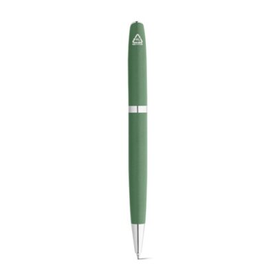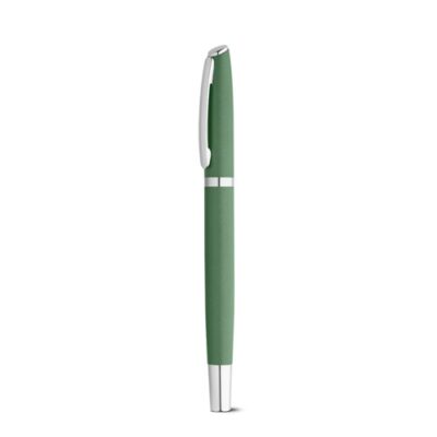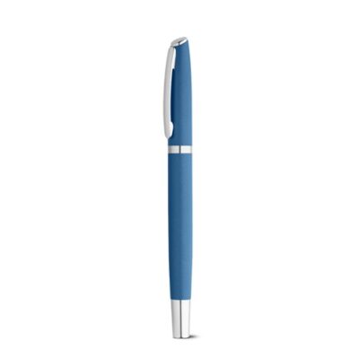 Roller and ball pen set with aluminium (100% recycled) body with metal clip and tips. The sets are in the same colour and the ball pen has a twist mechanism. Blue ink. Supplied in a 100% recycled paper gift box. Roller: ø11 x 140 mm | Ball Pen: ø11 x 140 mm | Box: 178x46x29 mm