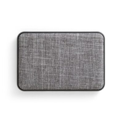 PET (100% rPET) portable battery, with lithium battery, 5.000 mAh capacity, and 5V/2A input/output. Includes one micro USB port, one USB-C port, and two USB ports. USB-C cable to charge. Supplied in a kraft paper gift box. 65 x 98 x 10 mm