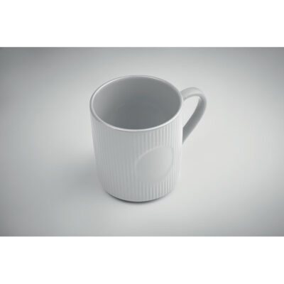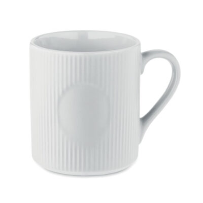 “Ribbed ceramic mug in matte colour. Capacity: 340 ml.”
