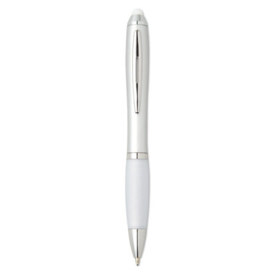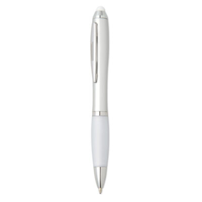 Twist action ball pen in ABS with stylus soft grip and matching tip. Blue ink