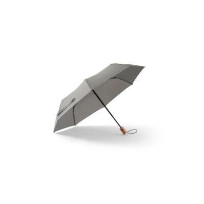 190T recycled polyester (100% rPET) pongee umbrella, with fibreglass ribs and wooden handle. Foldable umbrella in 3 sections, with automatic opening and closing and windproof. Supplied in bag. Umbrella: ø990 x 285 mm | Bag: ø55 x 240 mm