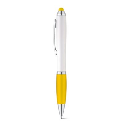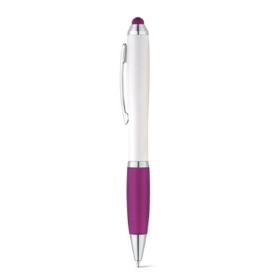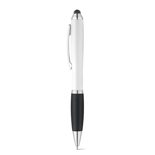Ball pen with metal clip and twist mechanism. Suitable for use on devices due to its touch tip and comfortable non-slip grip, available in several colours. Blue ink. ø11 x 135 mm