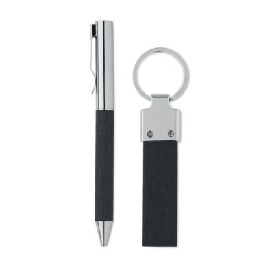 2 piece gift set in gift box. Including metal twist ball pen with RPET polyester detail and RPET polyester key ring. Blue ink.