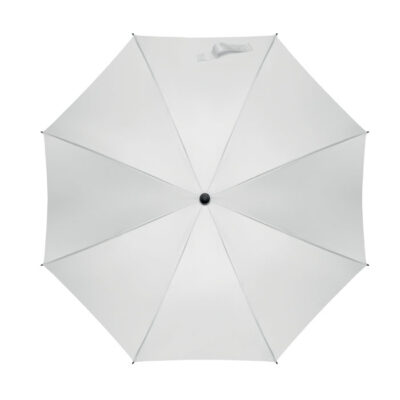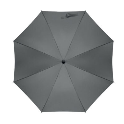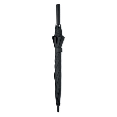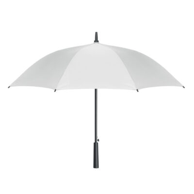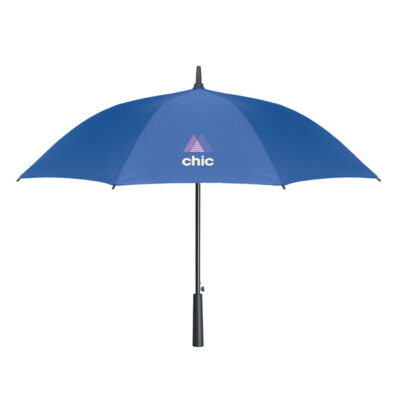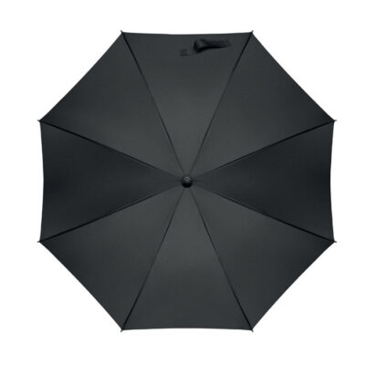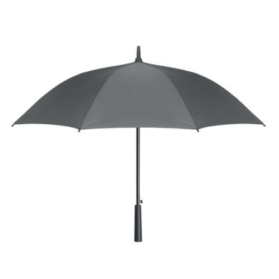 23 inch auto open windproof umbrella in 190T pongee with fiberglass frame and black plated shaft and plastic tips. ABS handle with rubber finish. Manual closure.