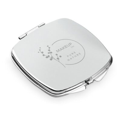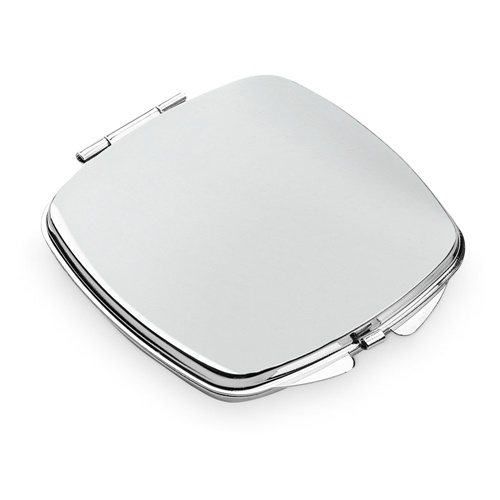 Double make-up mirror in metal, practical and compact to use whenever necessary. The mirror has a slot for doming customisation. Supplied in a gift box. Box: 67 x 75 x 9 mm
