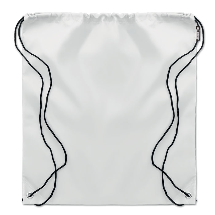 Drawstring bag in 190T RPET with PP strings. Eco-friendly material made from recycled plastic bottles.