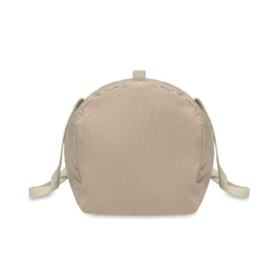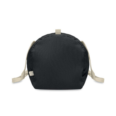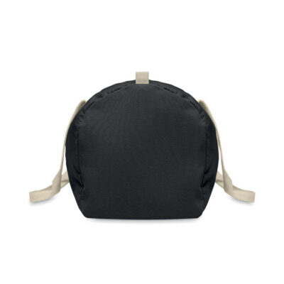 Duffle, sports or travel bag with zippered side compartment and zippered inner pocket in 320 gr/m² recycled cotton (80%) and recycled polyester (20%) with long handles.