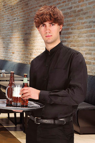 • Γιακάς Mandarin, ασορτί κουμπιά στις μανσέτες και κλείσιμο μπροστά για καλύτερη ρύθμιση και μεγαλύτερη άνεση.