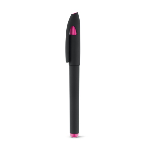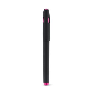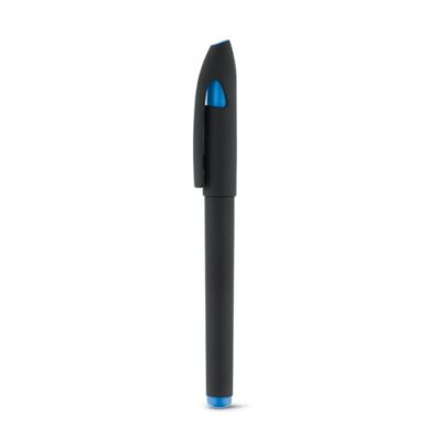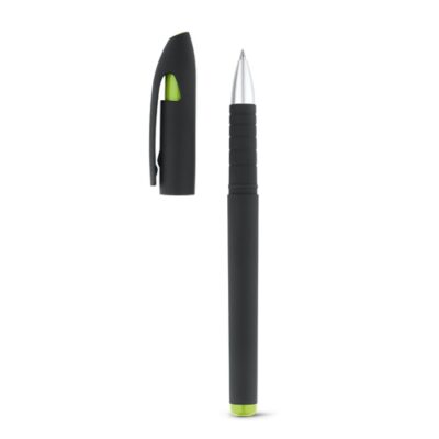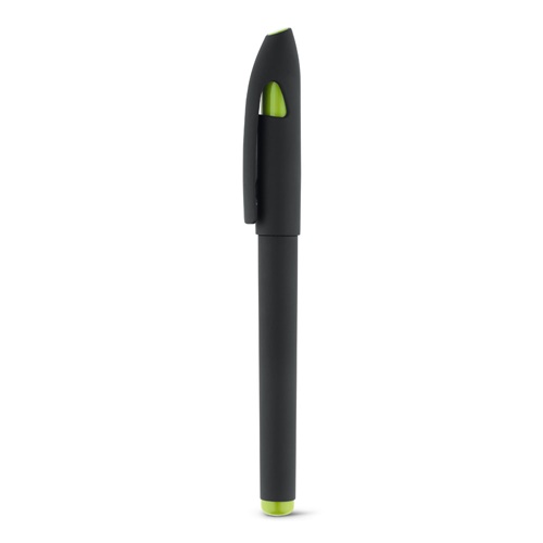 Ball pen with rubber soft touch finish. ABS cap and clip, colourful trim and anti-slip grip. Black gel ink. ø13 x 143 mm