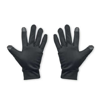 Tactile sport gloves for smartphone in polyester. Two fingers with touch function with anti-slip dots on palm and finger in PVC.