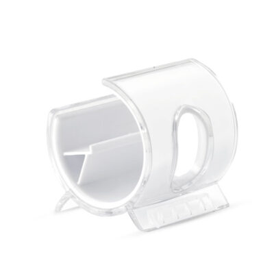 Mobile phone stand in plastic covered by transparent plastic layer.