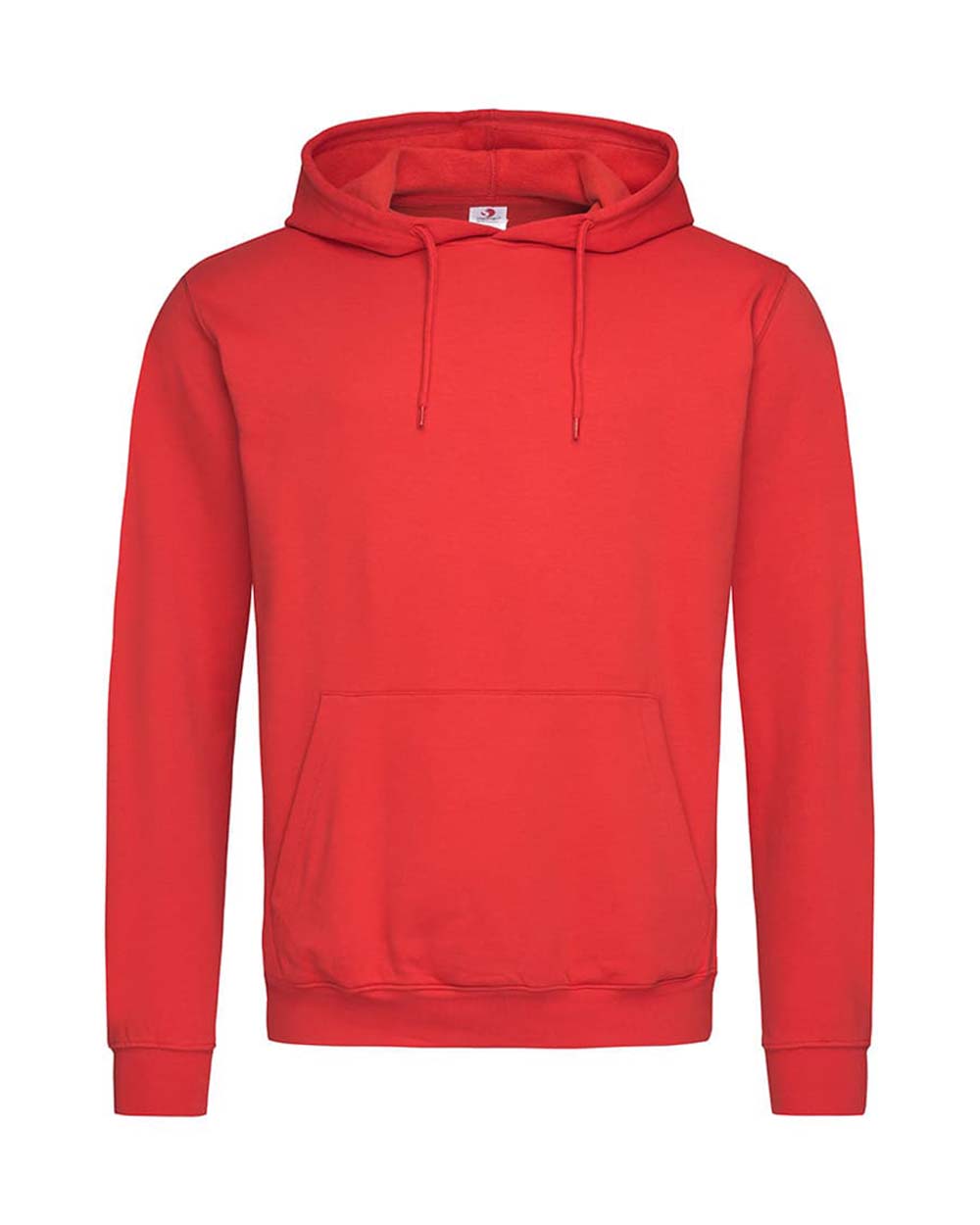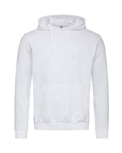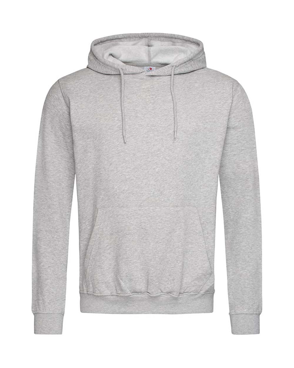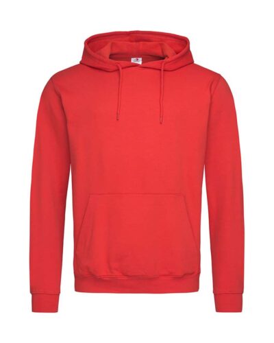 A durable ring-spun cotton-polyester-blend: midweight hooded sweatshirt for men, brushed inside with kangaroo pocket, elastic cuffs and waistband.
