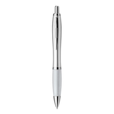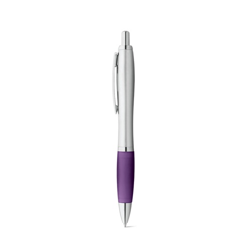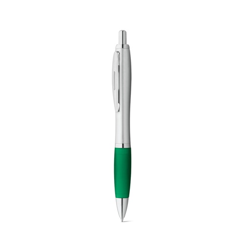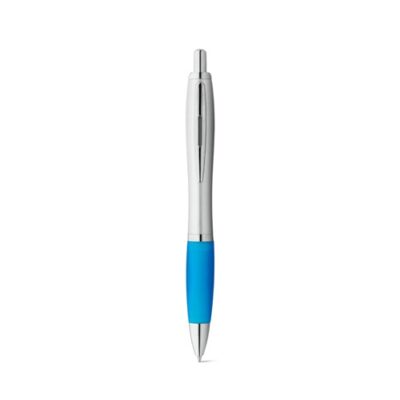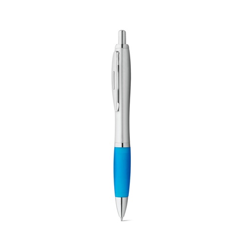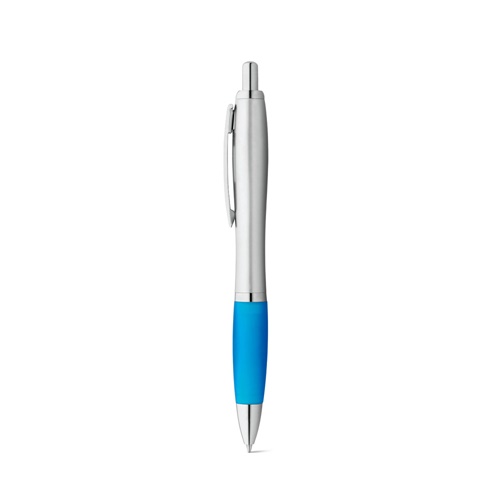 Ball pen with metal clip and coloured non-slip grip. Blue ink. ø12 x 140 mm