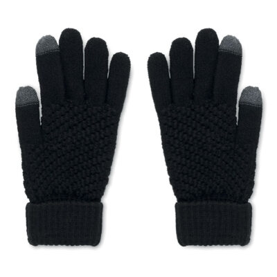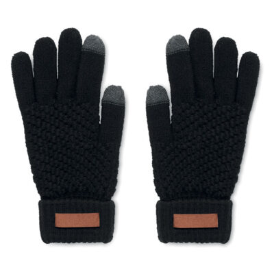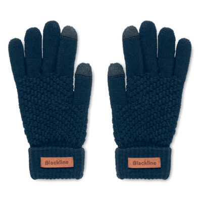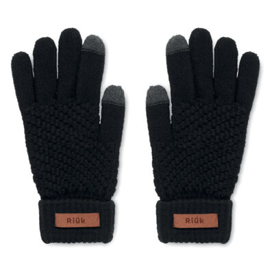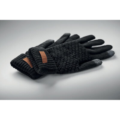 Tactile gloves for smartphone in RPET with label for printing area.
