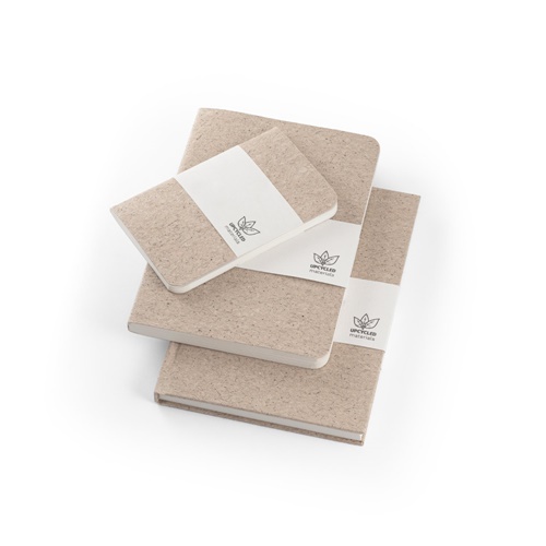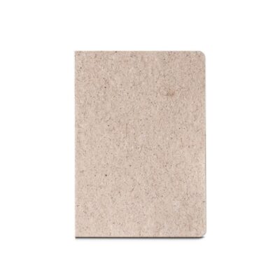 A5 notepad with semi-rigid cover made from tea leafs waste (65%) and cotton waste (35%). The inner paper is made from cotton waste (100%) and is highly durable. Contains 100 lined pages and paper band with artwork. No waste was generated and no chemicals or trees were used in the manufacturing process of this notepad. As the product is made from natural materials, the colour and the printing result may vary between products. 140 x 200 mm