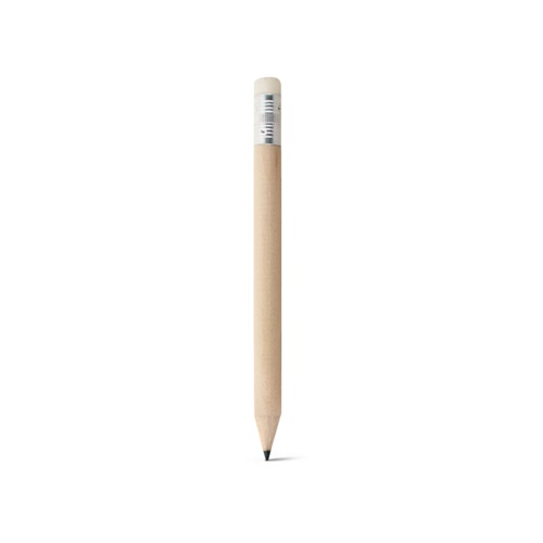 6 piece stationary set. Includes a jute and cotton case, wooden ruler, plastic sharpener, eraser, paper pencil and ball pen with blue ink.