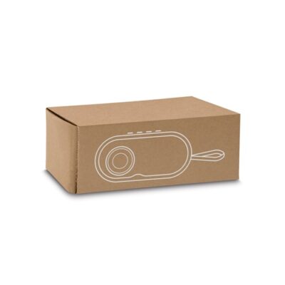 ABS (36% rABS) and bamboo portable speaker. With 3W power, BT 50 transmission and radio function. Autonomy up to 5h with 1200 mAh battery. Supplied in a kraft paper gift box. As the product is made from natural materials, the colour and the printing result may vary between products. 135 x 40 x 65 mm