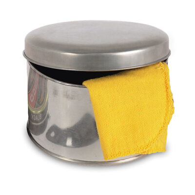 5 pieces shoe polish kit in tin gift box. This set includes a yellow polish cloth, a shoe horn, a big brush, a small brush for the smaller details and a shoe polish in a neutral colour.