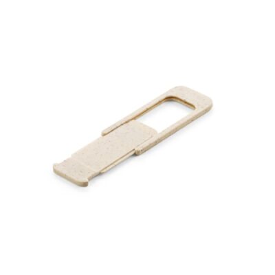 Wheat straw fiber and PP webcam protector with sliding cover and sticker on the back. This protectors size is universal and suitable for smartphone, tablet and laptop. 42 x 17 mm | Open: 65 x 17 mm