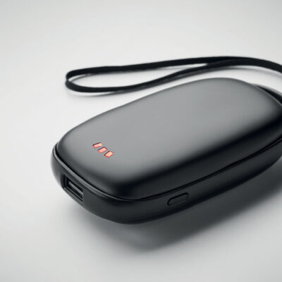 Electric handwarmer in aluminium with 3 intensity levels (30ºC, 37ºC and 50ºC) and a built in 4000 mAh power bank. Includes hand strap. In/Output: Type-C. Output USB-A. Output: DC5V/2A. Type-C to Type-C cable with Type-A adapter.