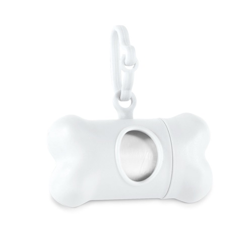 Bone-shaped PP dog bag dispenser including 20 PE hygienic dog bags. Closed: 111 x 21 x 15 mm